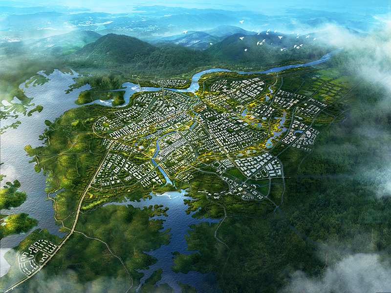 總體城市設計以“大別明珠、田園赤城”為形象定位,以靈秀、精致、活力的山水田園小城為設計目標,打造大別山腳下的山水田園城市。