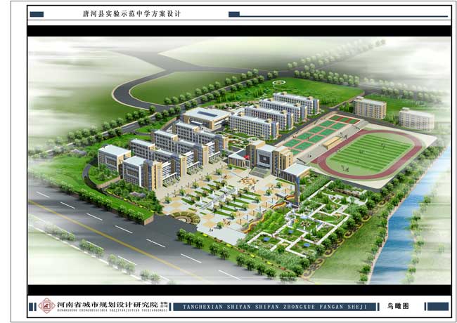 擬建的唐河縣實驗中學(xué)位于唐河縣城唐河西崗,為六十班高級中學(xué)。設(shè)計學(xué)生人數(shù)為3360人。教師人數(shù)為260人。規(guī)劃用地面積:145016.42㎡,總建筑面積:63791㎡。其中包括:綜合樓、教學(xué)實驗組團、學(xué)生公寓、教師公寓、食堂及洗浴中心等一系列配套設(shè)施。唐河縣實驗中學(xué)的建設(shè),將有效改善這里的教育狀況,滿足當?shù)厝罕娙找嬖鲩L的教育服務(wù)需求。