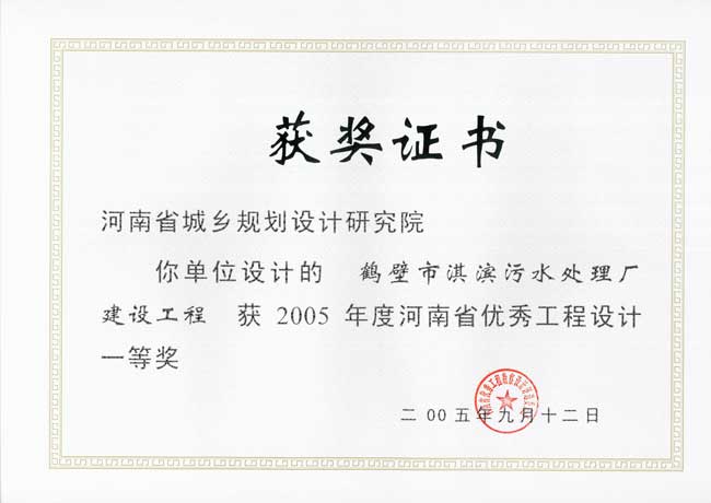 ★污水處理廠工程獲得2005年度省優(yōu)秀設(shè)計(jì)一等獎(jiǎng)
