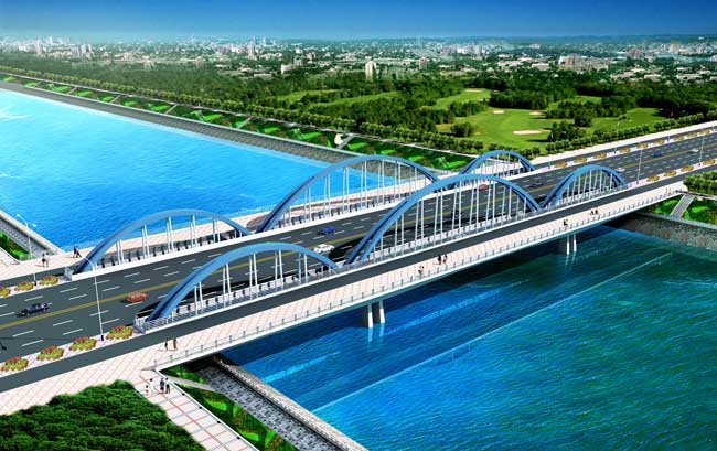 北環(huán)路規(guī)劃為城市主干路,位于市區(qū)北部,西接甌江大道。西起鄭新路(K0+000),東至解放路東(K4+550),全長4550米,為新建工程。中興路暖泉河橋位于設計樁號K1+615處。本橋設計提供了橋梁造型方案為梁拱組合橋梁。
