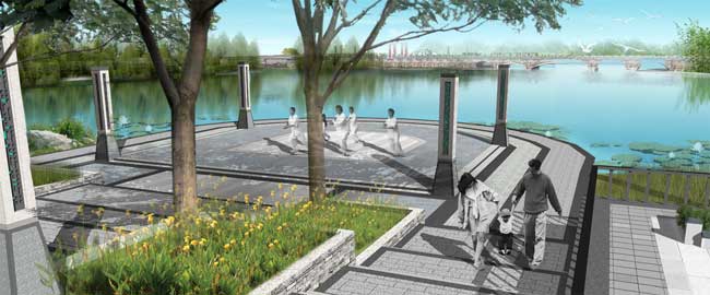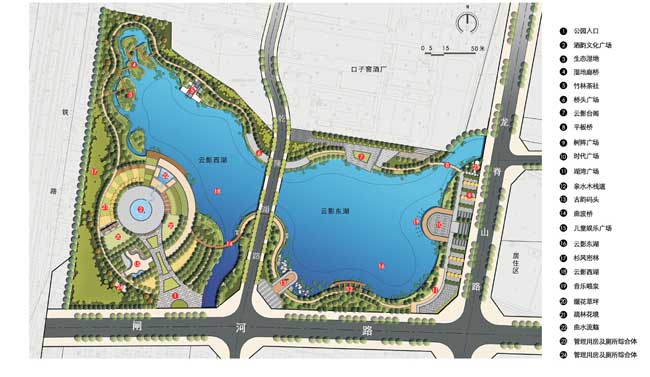 該方案以一環(huán)連兩湖,三軸串八景,五區(qū)話古今,,動靜兩相宜的景觀結(jié)構(gòu)。共分為酒香禮頌、津渡迷蹤、華汲岸雅、彩境盈風(fēng)、柳孜遺韻、云影湖波六個部分。