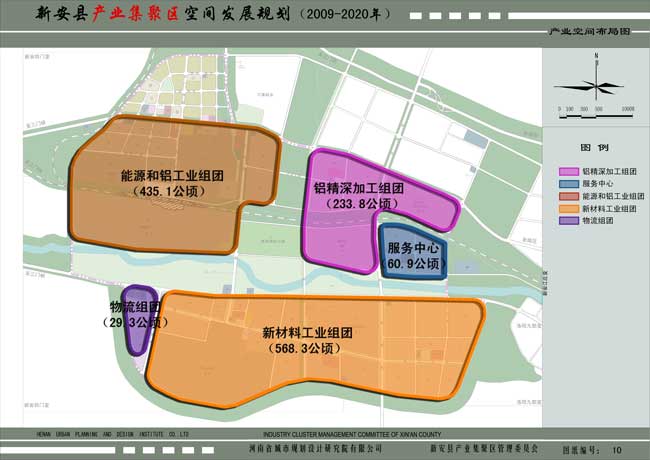 新安縣產(chǎn)業(yè)集聚區(qū)位于新安縣城西部,距縣城中心區(qū)約1公里,規(guī)劃總用地約17.8平方公里。主導(dǎo)產(chǎn)業(yè)選擇為鋁金屬精深加工產(chǎn)業(yè)和以鎂合金、鈦合金等為主的新材料產(chǎn)業(yè)。產(chǎn)業(yè)空間布局為“一心、四組團(tuán)”的總體空間格局?!耙恍摹睘榫C合服務(wù)中心,“四組團(tuán)”為能源和鋁工業(yè)組團(tuán)、鋁精深加工組團(tuán)、新材料工業(yè)組團(tuán)以及倉(cāng)儲(chǔ)物流組團(tuán)。該區(qū)功能定位是: